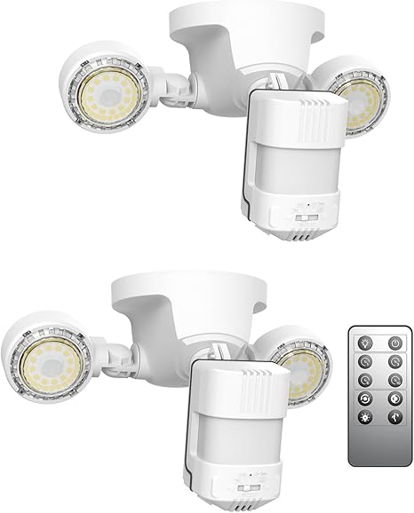 - Motion Sensor: motion security light can be triggered by moving human, cars and animals up to 72 feet sensing range at 320° detection angle, Lighting time can be adjusted from 10s to 10mins; keep your home secure 24/7. This outdoor motion security light can be installed for soffit/eave mounting or wall mounting by following a few wiring steps. Good lighting solution for dark areas like middle sized backyard, front door, garage, driveway, sidewalk,etc.