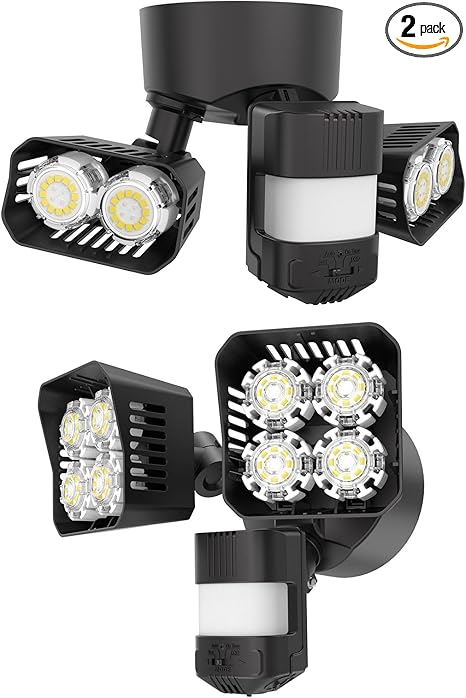 - Upgraded Super Bright Motion Sensor Outdoor lights: It provides 28W, 3500LM 36W, 3600LM super bright lighting for your exterior living environment. Adopt patented ceramic temperature control system, and reaches the highest Level I heat dissipation standard, It effectively solves the problem of slow heat dissipation due to the internal thermal resistance of traditional aluminum technology and provides more energy efficient output and a longer lifespan, keeps 90% brightness