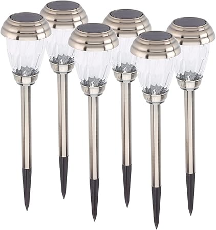 - Set of 6 decorative solar lights ideal for pathways, driveways and gardens
