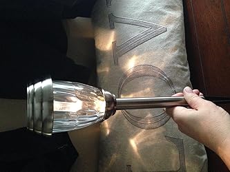 - Stainless steel, with an electroplated pewter finish and real glass shade