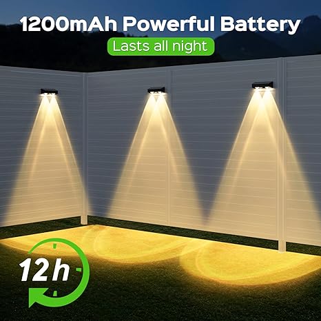 - 【12H Working time & IP65 Waterproof】: The solar wall lights outdoor waterproof use monocrystalline silicon solar panel with high conversion rate. Built-in battery upgraded to 1200mAh. It can work all night after 6-8 hours of charging in direct sunlight. The deck lights solar powered are made of premium PC and ABS material with IP65 waterproof rating design, which can withstand bad weather such as rain or snow.