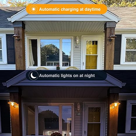 - Outdoor Solar Barn Lights 2PCS: Turn on the bottom switch and keep the switch in the “ON” position, By detecting the brightness of the surrounding environment, This solar barn lights can automatically turn on at dusk and turn off at dawn.