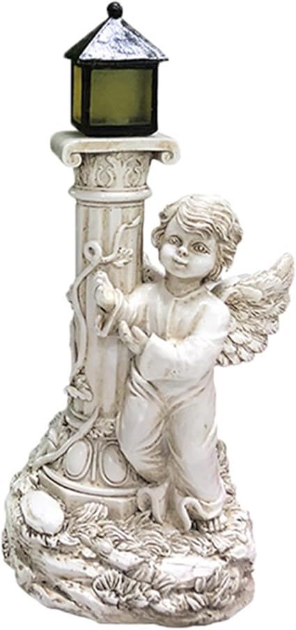 Solar Cherub Angel Garden Column Statue Lighting Outdoor Decor Gift
