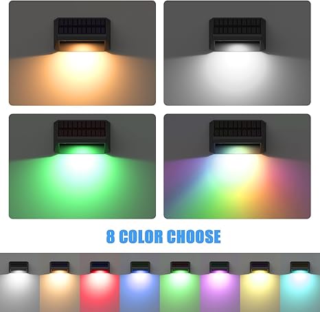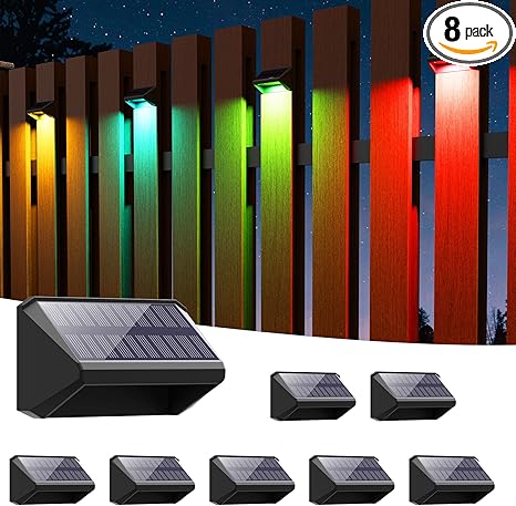 Solar Color Changing Fence Lights Outdoor IP65 Waterproof 8 Pack