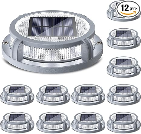 - 【Solar Powered】The Siedinlar solar deck lights are made of aluminum alloy and in two modes (Cool White and Warm White) with 16 LEDs, providing 15 lumens brightness in all directions. It has a monocrystalline solar panel with 6 to 8 hours of charging time and 8 to 15 hours of working time.