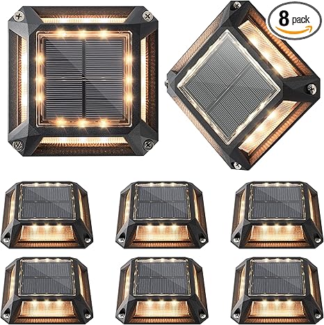 Solar Deck Lights 8-Pack IP68 Waterproof LED Outdoor Garden Lighting
