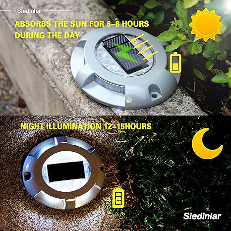 - 【Elegant Design】Siedinlar Solar deck lights is made of aluminium alloy, solar panels, led, and storage battery. With its pressure resistance design, no need for hand controlling, simple, safe.