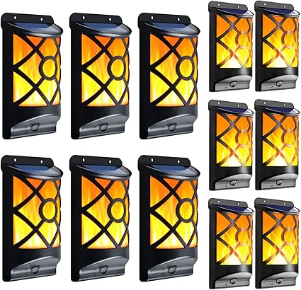 - Beautiful Dancing Flames Design: This solar wall light will provides vivid flickering flames which is attractive, it looks like fire is flaming. The LED in the fence light cast a bright, safe, soft, mood-enhancing glow, and will bring unique ambience to your home garden, Halloween & Christmas light decorations