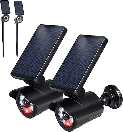 - 【Energy Saving】Solar lights outdoor motion sensor has built-in photocell sensor, it will turn off during the daytime and it will turn on automatically when the motion is detected at night. When there is no motion, the red LED is on as dummy camera.Able to fool burglers.