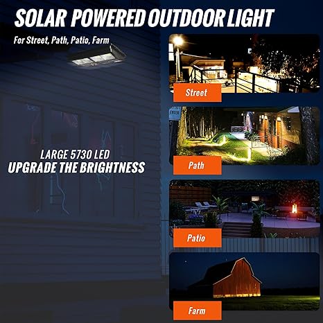 - 【60000 Lumens super bright 】The solar street lights provides 6500K daylight white light and equipped high-efficiency 5730 LED lamp, delivering an incredibly bright illumination of 60000 Lumens. With a 240 degree wide-angle lighting, which can provide covering up to 1600 square feet wider range of lighting and brighter light