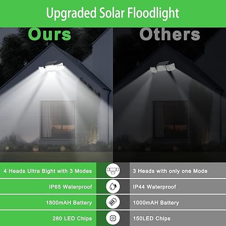 Illuminate your outdoor spaces with dalattin Solar Flood Lights! Enjoy 280 bright LEDs, 4 heads, and smart motion detection. Order now for brighter nights!