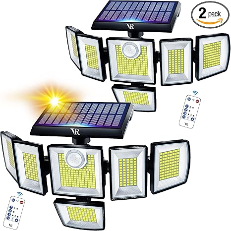 - 【360 ° Wide Angle Lighting and PIR Motion Sensor】VENSSTNOR upgraded 6 rotatable head lamps can rotate by 360 degree, achieve an all-round security lighting experience. Using smart PIR sensor, the solar light can detect movement within a distance of 40 feet at 180 ° and provide a lighting area of up to 2000 square feet.Gives you with extra brightness and larger visible area.