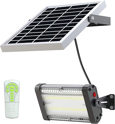 - Special design for In-door and Out-door usage and IP65 rating compliant, with multi settings based on sunlight conditions. With IP65 Rating without a Motion Senor. Multi stage light intensity adjustment to fit your needs for Room or Barn light, On/Off with remote control, timer, power (juice) 3 step indicator.