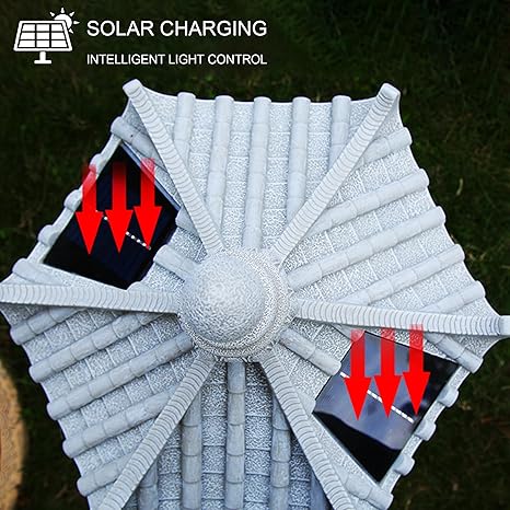 - ?️3. Solar-Powered: With its built-in solar panel and included rechargeable batteries, this garden statue: With its built-in solar panel and included rechargeable batteries, this garden statue absorbs energy from the sun during the day and automatically turns on at night. Say goodbye to expensive electricity bills and hello to eco-friendly lighting.