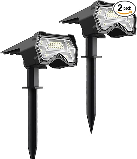 - 28LED: Our outdoor solar spotlight has a large battery capacity of 1200 mAH, provides super brightness for your garden, and can illuminate for a longer time