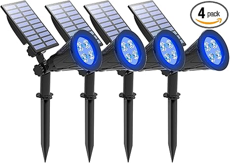 - Dusk-to-Dawn Solar Landscape Spot Lights: T-SUNUS solar garden lights automatically detect ambient light changes and switch from charging mode to illumination mode at dusk (auto-on at night/auto-off at dawn). These outdoor blue spotlight solar lights for yard are ideal for landscape accent lighting and dramatically highlighting trees, shrubs, and architectural features.