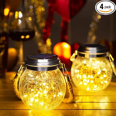 Illuminate your outdoor spaces with ROSHWEY 4 Pack Solar Lanterns! Waterproof and stylish, perfect for patios and pathways. Order yours today!