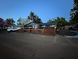 These solar lights set on “warm” give off a soft setting at night. They are perfect to see the dogs silhouette when they are out and yet highlight the perimeter of the fence.