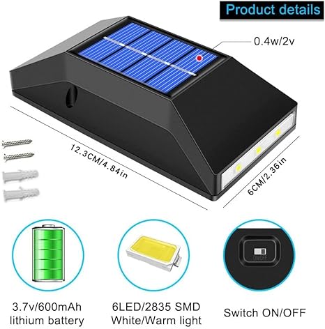 • ▲ No wiring, no extra power supply – With the built-in solar panel on the top as a power source, it saves you the trouble of complicated wiring, just mount it to the wall or wooden fence with 2 screws (included). It is suitable for outdoor fence wall light and garden fence lamp.