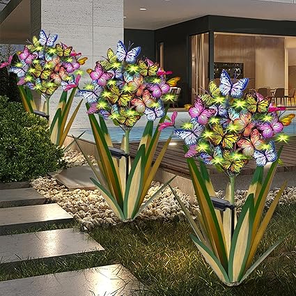 Brighten your garden with our Solar Metal Agave Butterfly Flower Sculpture! Enjoy beautiful lights and motion—order your set today!