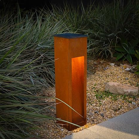 Illuminate your garden with our Rust Finish Solar Metal Rectangular Slot Light! Order now for a warm LED glow that enhances your outdoor space!