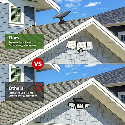 - Wide Lighting, Ultra Bright – Lepro outdoor solar light adopts 72 ultra bright LEDs and 3 adjustable heads, which brings 1000lm high brightness 6500K daylight. The 3 light heads can be adjusted vertically and horizontally to achieve 270° wide lighting angle. This outdoor solar light can illuminate larger areas and spare you the effort of installing two extra lights on different sides.