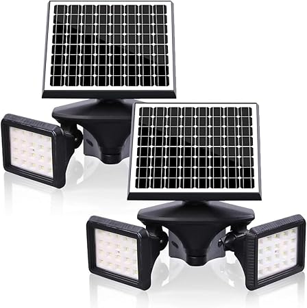 - << Our Solar Light IP65 waterproof – VS- others generally IP55 >> This solar flood light is totally designed for outdoor or landscape lighting. It is very bright for outdoor functional lighting purpose. Both the solar panel and dual-head can be 360 degrees rotatable.