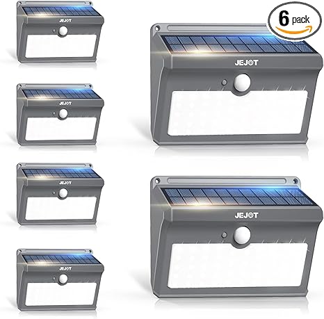 - Unique Anti Glare Design: JEJOT solar security lights outdoor motion sensor is made of high-quality LED beads, which can provide sufficient brightness. The lampshade design ensures even distribution of light without glaring. solar sensor lights outdoor are perfect for illuminating your outdoor areas such as gardens, fences, yards, garages, decks, stairs, steps, terraces, etc