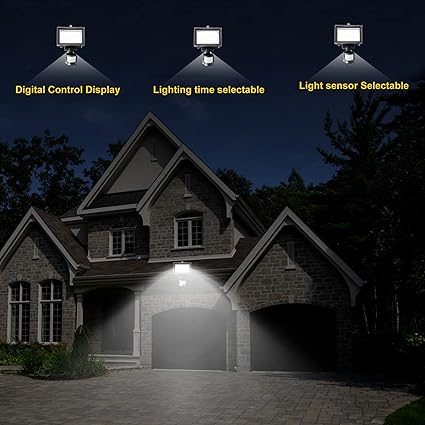 - Solar Motion Sensor Light Lights with Moving Detector , Digital Selectable Delay Working Time 30sec To 600sec , Lights Sensor ON/OFF Sensitive Adjustable by Digital Button, Sensing Cover Angle 120 Degree , Effective Detecting Distance 9~32 Ft ,Provide Wide Area Security Lightings on your Way Home and Drive-away the Intruder