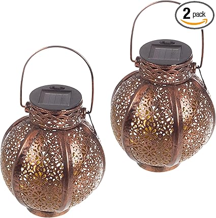 Solar Outdoor Lights Set of 2 Rechargeable LED Lanterns with Hooks