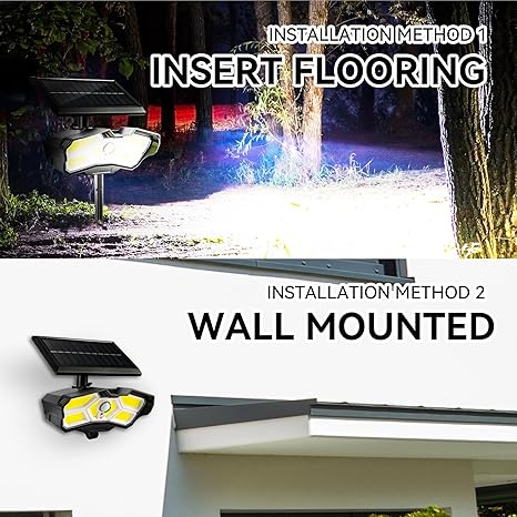 - Long working hours: This solar floodlight is equipped with a 2000mAh rechargeable battery and an efficient solar panel, ensuring that it can charge even in low sunlight. The solar lamp automatically charges during the day and starts working in the dark. Please install the solar lamp in sunlight to effectively charge the battery. (Solar panels and lights can be installed in different locations to achieve more efficient charging and use, suitable for a wider range of scenarios, even in basements and indoors.)