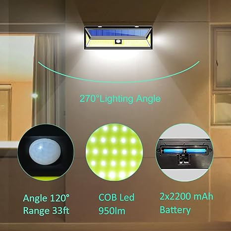 - 【bright Outdoor Solar Motion Lights】180 core cob with wide lighting angle of 270°, Solar motion sensor lights provide a excellent illumination, which light up your garden, patio, yard, driveway, pathway, stairs.