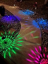 Love love these solar lights. Our old solar lights were starting to burn out and you can’t replace the batteries/light. So I checked and found these, I really like that you can change the color and setting. And you get 8 lights, Price was not bad. I have 6 of them in the yellow/gold color. Solid color and the other 2 a turquoise color next to our rock fountain. “I will say it’s kinda hard to get the color correct, because you have to be really quick to stop the rotation. The light that shines through out has a beautiful contrast on the concert & rocks. Very pretty. Highly recommend. For what ever reason I can’t down load the pictures. 🙁