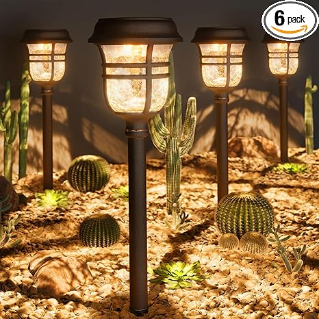 - IP65 Waterproof & All-Weather Solar Outdoor Lights – Built with upgraded ABS, stainless steel poles, and crackled glass, these outdoor waterproof solar pathway lights withstand rain, snow, and -40℉-180℉ extreme temperatures. Corrosion-resistant design ensures year-round durability for solar yard lights or solar powered outdoor lights in any climate.