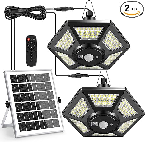 Solar Pendant Lights with Motion Sensor Dual Head for Outdoor Use