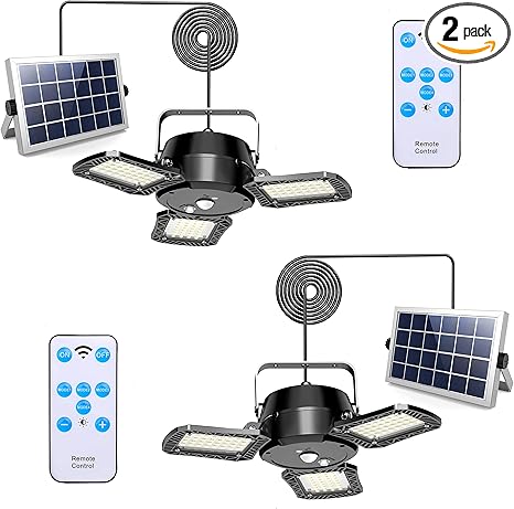 - Outdoor Light Also Indoor Use: our solor pendant light is connected to the solar panel by a 16.4ft cable, which allows you to leave the solar panel outside for charging while hanging the light indoors or under roof, it supports work indoors and even in daytime(Unaffected by light control, the solar panel is charged during the day, the light can be turned on when motion detected).Three leaf blades design, and each one can be adjusted to 120° for wide application