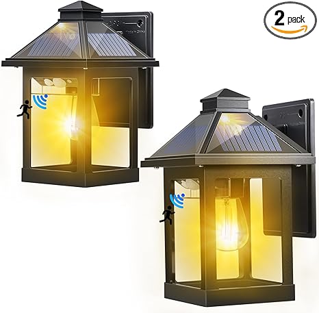 - Solar Wall Lantern & Retro Design: Our solar porch light coming with installation accessories and a user manual, the solar outdoor wall sconces are easy to install with no wired, and it only takes a few minutes to install successfully. Clear tempered glass and high-quality plastic make this outdoor motion sensor light look elegant and sturdy, can add highlights to your house.Perfect for your front door, fence, garden, yard, patio, porch, patio, balcony, hallway and more