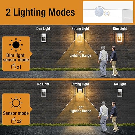 - [ 2 Motion Sensor Security Modes] : Choose between Dimming Sensor Mode, which adjusts brightness based on motion, and Sensor Light Mode, which delivers full brightness when motion is detected. Select the mode that best enhances your convenience and security