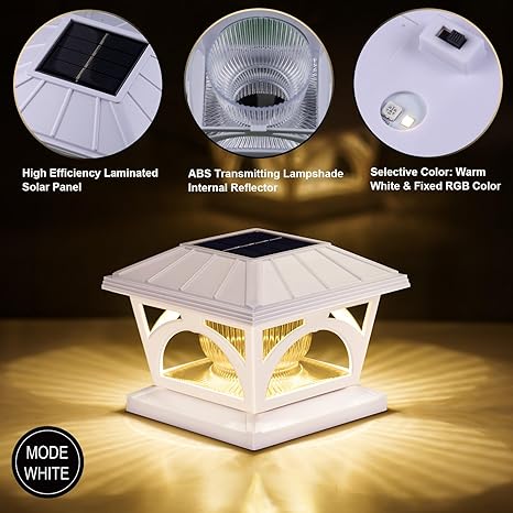Solar Post Cap Lights 20 Lumens Warm White RGB 3 Modes for 4×4 Posts