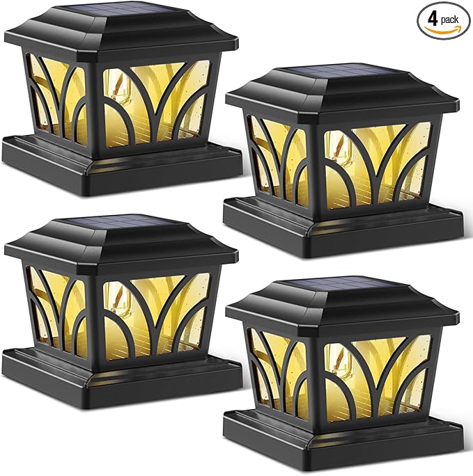 - 【Edison LED Bulb】This solar post cap light employs a durable Edison LED bulb, with the entire lamp made from aluminum and raindrop-tempered glass. The cap light automatically turns on at dusk and turns off at dawn. With a brightness of 20 lumens, once fully charged, it can provide consistent, reliable lighting for your home for up to 12 hours.