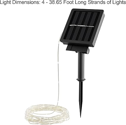 - PRODUCT DETAILS – Materials: ABS Plastic and Copper Wire. Dimensions: (L) 38.65’. Set of 4. Includes: 2V/150mA Solar Panel and Rechargeable AA 1.2V/800mAh Ni-MH Battery. Note: The Outdoor Solar String Lights May Ship Separately. Color: Warm White.