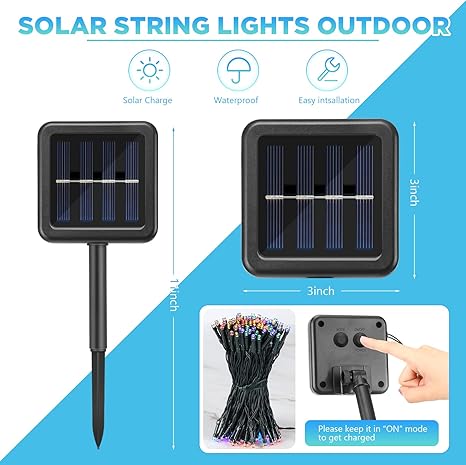- Proper Size: the length of the outdoor Christmas string light measures about 22 meter/ 72 ft, enough long for you to use, and it will receive, store and release solar energy more efficiently, can increase solar energy conversion rates; The solar string lights outdoor need shorter charging time and will provide longer lighting time, the charging time is usually 6-8 hours in direct sunlight, and up to 6-8 hours on a full charge