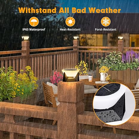 - IP65 Waterproof: Solar powered fence lights has an IP65 waterproof rating and is made of tough ABS. It will withstand harsh heat, heavy downpour, and snow. Charged for 6-8 hours in the sun and automatically turn on for 8-10 hours at night