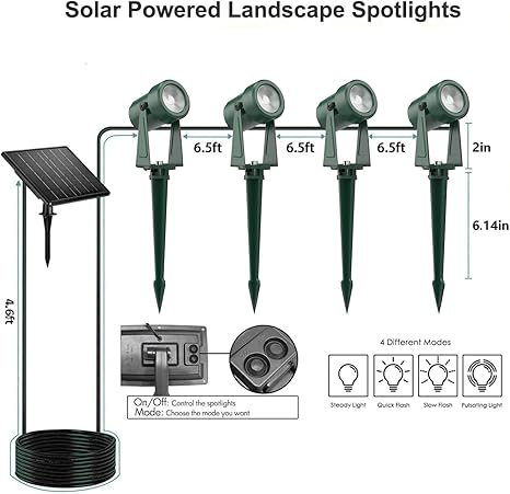 - 【Durability & Safe】Designed to withstand various weather conditions, solar spot light is constructed with durable materials. Operating on low voltage, reducing the risk of electrical hazards. This makes them safe to use around children and pets, as well as in areas prone to moisture and water exposure