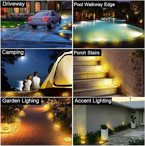Solar Powered LED Garden Lights 12 Pack Waterproof Outdoor Disk Lights