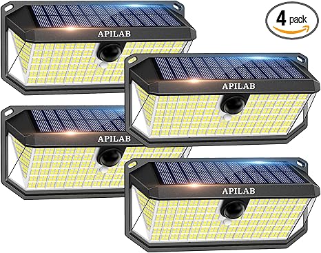 - 【Ultra Bright Light Beads】APILAB Brightest 416 LED floodlight beads are brighter than the 120-300 LED lamps in the market, which brings the wider and brighter lighting area. It has 16.5″ large Solar panels, provides long hours of light and extra long life. Using a smaller, more compact square-shaped lens design to focus the light, longer range, better lighting effects. Perfect for illuminating your outdoor spaces such as front doors, back gardens, fence posts, driveways, backyard, garages, deck areas, patio, porch, stairs etc.