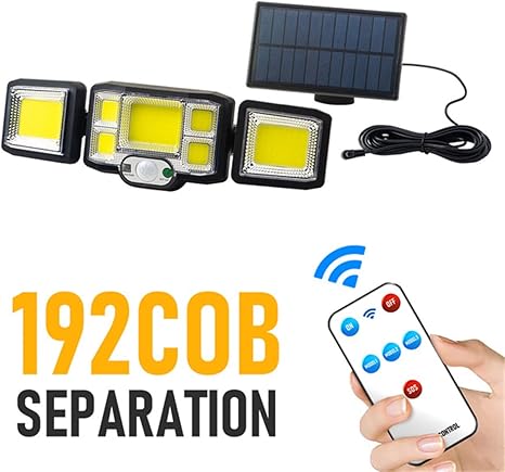 - [ Bright 192 LEDs]Equipped with 192 LED beads, our solar outdoor light can provide 1800LM bright lighting. 3 headlights with rotatable design illuminate a wide angle of up to 270°. Waterproof IP65, heat resistant, all weather