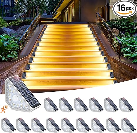 - 【25% High Conversion Solar Panel】Our solar stair lights are equipped with an 800mAh built-in solar powered rechargeable battery, this smart design gives you 0 electricity cost. The advanced lithium-ion cells boast a 25% conversion rate and are more energy efficient than traditional Ni-MH batteries. Simply place the motion lights in direct sunlight for 6-8 hours and enjoy the lighting up to 12 hours throughout the night. NOTE: Please make sure sunlight directly goes straight to the panel