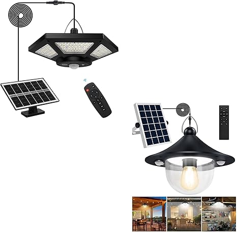 - IP65 Waterproof & Outdoor Indoor Use: This solar power outdoor lights is made of durable ABS material with waterproof rating IP65, which ensures weather resistance against water, heat and frost. In addition, the solar panel and the light are designed separately, hang the solar gazebo light at the desired location and it is ready to run, perfect for shed, gazebo, garage, barn, chicken coop, storage room, campground, aisles and more.