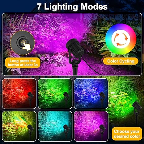 Solar Spot Lights Outdoor RGB Color Changing Waterproof 6-in-1